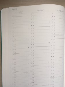 The MD diary allows me to combine my planning and routine together so that when I travel, everything is in one place. Each month has a square for each day, with a wide right-hand margin and further space at the bottom of the page.